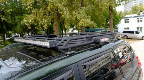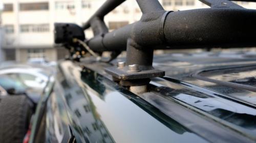 来到车顶,星工场的车顶行李框,原厂的行李架储物能力实在有限,而且还需要加装横杆,功能性太差。索性在1.0时我就把它装上了,一来载货能力增强(我一般把椅子、帐篷、折叠桌子、油桶都会放车顶上),二来功能性的增强,可以便捷的装灯,还有旗杆座。