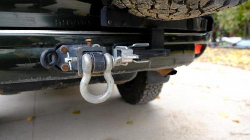拖车钩,我这装的是方口,为什么没弄霸道车主最爱装的拖车钩,因为我预留方口这样可以装快插绞盘,但拖车钩是一体的,肯定就没戏了。关键时刻快插绞盘是能救命的,未来在3.0中,我会把后边进行重新打造,就包含了快插绞盘电线插头的预埋。