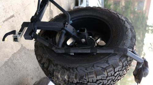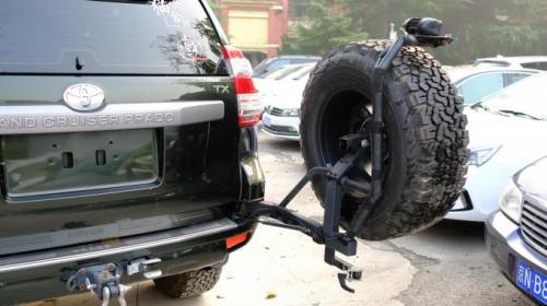 车尾部,最满意的改装件,这个国产的备胎支架。我车上的又又又一个精品国货!这玩意儿出自上面提到的E族“目的地西藏”兄弟,普拉多改装领域,自己研究了好多改装件(也是90后),样样精品。说回这个支架,为什么会有这么个东西。因为中规普拉多用户要想装副油箱,备胎就没地方放,没地方放就只能改中东尾门,但要知道,一套中东尾门总成可是不便宜啊,那会儿我问的也得大几千。而且,在面对高强度的越野穿越,备胎挂在尾门上,尾门的强度,真的让人揪心。“目的地西藏”兄弟按照澳洲KAYMAR的设计原理,打造出了这个支架。
