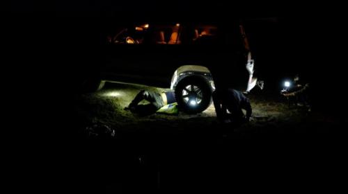 这是我们在大海道无人区,车队老大哥的陆巡后避震出现问题,当时已经天黑,必须亮出我的ARB神灯,有如神助般的,车队负责车辆保障的刘哥,就把车修好了!哈哈(ARB请结下这月广告费)