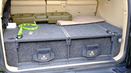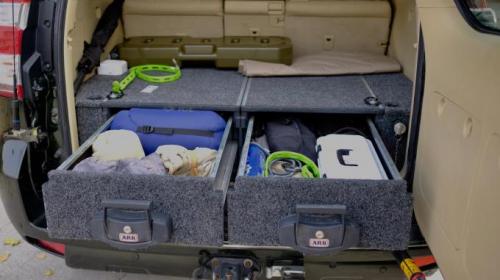 同时,这套抽屉之所以称之为系统,那一定不是只单纯的可以储物。我简单举例,ARB的冰箱可以在上面固定,同时抽屉盖板你可以选用可推拉的,这样冰箱很轻易的就推出来了。另一个是安装其他配件,例如我在抽屉侧盖板下面,装了ARB的气泵和电话信号增强器。未来我应该还会在左侧的盖板下装变压器,可能的话再来个副电瓶。还有配套的ARB隔物网,前中上各种分割增加储物。另外这个抽屉带锁,这个功能尤其在你长途自驾想办理车辆托运时最棒。因为中国目前托运你都要把钥匙交给托运公司,这...说白了就是君子协定,真少点什么小物件,你也没辙。但有了这个车内锁,有些东西你不想装包里的,直接锁抽屉里,就踏实儿飞机回家吧。