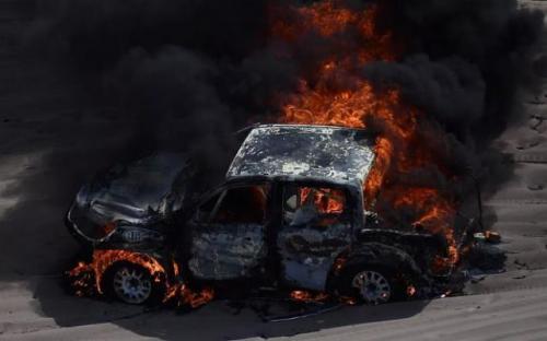 2018年1月8日,秘鲁,2018达喀尔拉力赛第3赛段,一辆赛车遭遇事故燃烧报废。