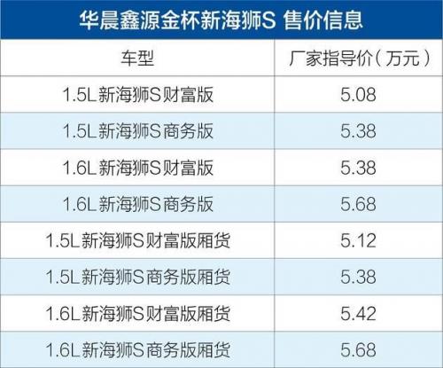 易车讯日前,华晨鑫源金杯宣布旗下新海狮S车型正式上市,新车的外观更加精致,内饰部分增加了7英寸悬浮大屏,共推出2种动力8款车型,厂家指导价为5.08-5.68万元。