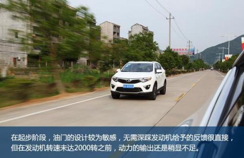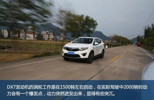 在起步阶段,油门的设计较为敏感,无需深踩发动机给予的反馈很直接。不过这也仅是在初短,在发动机转速未达2000转之前,动力的输出还是稍显不足。DX7发动机的涡轮工作是在1500转左右启动,在实际驾驶中2000转时动力会有一个爆发点,动力突然迸发出来,显得有些突兀。