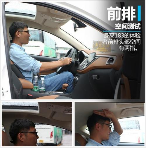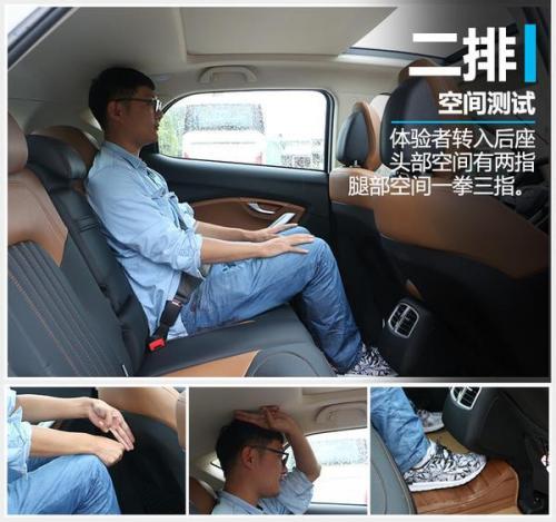 拥有2,700毫米的轴距表现东南DX7车内空间并不会让人失望,实际乘坐体验环节,如图所示身高184厘米的体验者进入车内,调节好驾驶坐姿后前排头部空间有两指左右,当体验者坐到后排,其腿部空间已经达到1拳3指,乘坐空间较为宽裕。另外该车后排中央地板的凸起虽然不高,但这对于后排中间乘客的乘坐舒适性来讲有所下降。