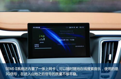 在内饰的细节做工上,按键的质感、缝线的边缘以及装配工艺上,与之前东南车型相比有很大进步,并不会让你有抵触心理。在门板等经常与身体接触的位置都是软性材质包裹,增加友好度。东南SEMI-II车载系统所涵盖的功能较为全面,语音助手、剩余油量显示、油耗显示等多种功能,并且该系统还内置了一张上网卡,可以随时随地在线搜索音乐。不过稍显不足的是,内置的网络为3G信号,在习惯使用4G的网速后,3G稍显不足,并且在进入山地之后信号的质量不够平稳。