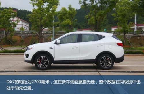 大灯造型精致感突出,灯眉为LED日行灯,远近光源是为卤素并配有自动大灯,符合主流水平。DX7的轴距为2700毫米,这在新车侧面展露无遗,整个数据在同级别中也处于领先位置。尾灯融入尾部线条并微微上翘,给人一种蓄势待发的感觉,同时由灯组延伸的几道线条给灯组造型凸显立体感。在车身底部硕大的双排气孔仿佛在暗示人们,该车动力并不俗。