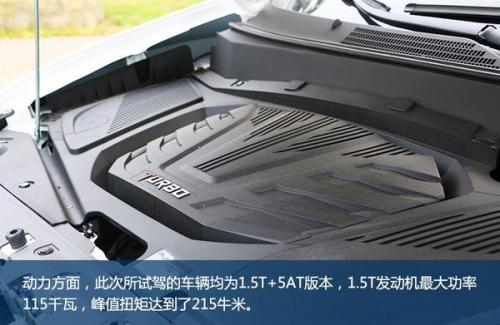 动力方面,此次所试驾的车辆均为1.5T 5AT版本,自动挡的加入带来的便利性是手动车型无法比拟的,但1.5T 6MT仍是DX7的助力车型。1.5T发动机最大功率115千瓦,峰值扭矩达到了215牛米。在DX7所有动力组合当中,只有1.5T有自动挡可选,2.0T车型仅有手动变速箱。