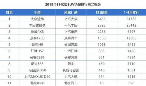 今年的车市寒冬已经延续至今,但总有一些常青树连续霸榜,创造一方佳话,从8月份中大型SUV领域销量榜单来看,上汽大众途昂以6485台的销量成绩占据排行榜第一,几乎是第二名普拉多销量的三倍。而在1~8月份累积销量上,途昂同样以51785台的成绩遥遥领先,继续屠榜。