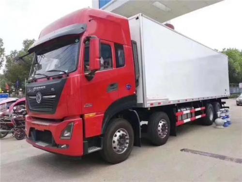 东风天龙小三轴国六(国五也有)冷藏车下线!雷诺260马力,法士特9档箱,箱长9.5米,总质量25000KG,额载12420KG,整车尺寸:12000*2600*3990.箱体内径尺寸:9500*2440*2500