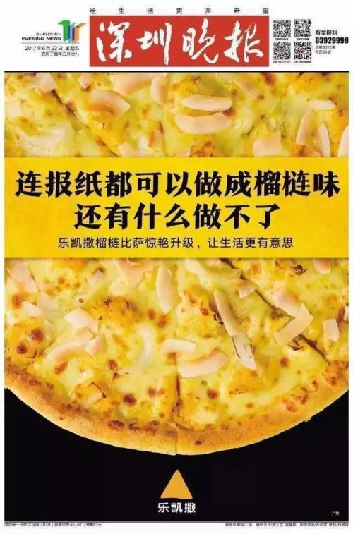 6月23号,乐凯撒联合深圳晚报,创造全国第一份“榴梿味报纸”。