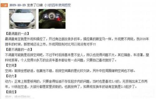 口碑上,消费者最满意的就是外观设计与操控性,特别是在颜值上,表示就算是与2020年上市的同级新车相比,也丝毫不占下风。不满意的地方就是空间太小,特别是后排空间,并且整车的隔音、车漆与内饰材质在同级车中都算不上出色。