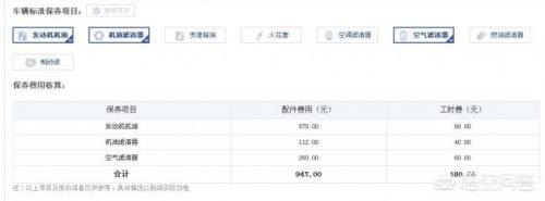 如果更换的是机油加两滤的话(空气滤清器,机油滤清器)价格为947元,小保养近1000,价格还是比较高的。