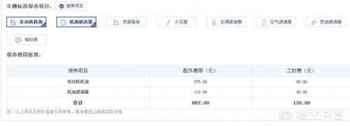 如图我们可以发现,正常的更换机油、机滤的话含工时费为687元,这样的价格对已一款中型车来说虽然还是可以接受的,但还是略贵的。