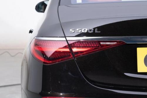 三叉星的立标设计,外加盾形的前进气格栅,无一不在证明它的豪华,而且紧凑的前脸设计,让它的主角光环在路上肆意散发。而且全系标配了LED远近光灯,以及矩阵式灯光设计,在这辆S500 L上,还配备了像素式灯光。