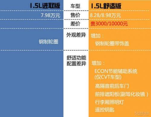 1.5L舒适版MT/CVT售价:8.28/8.98万元