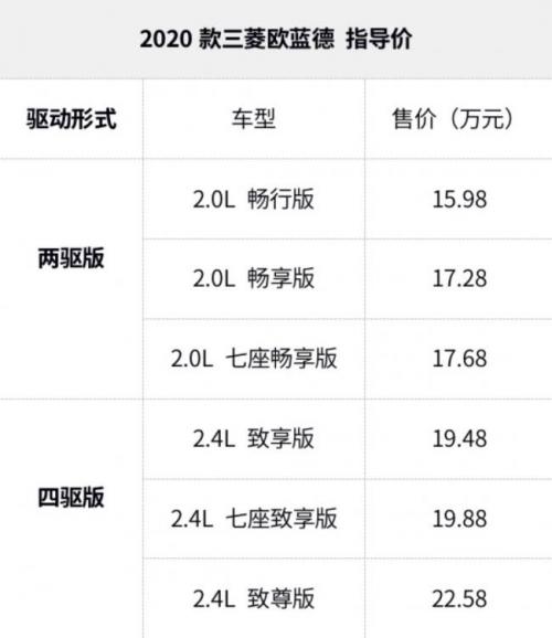 最后和大家介绍一下2020款欧蓝德的动力和价格