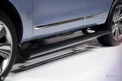 这款大尺寸轮圈造型颇具设计感,其设计灵感来自于喷气飞机的涡扇发动机,给人一种大气沉稳的感觉。同时,不要再去怀念概念车上的鸥翼门以及阶梯式踏板了,作为一台概念车这样的做法无疑更能够吸引眼球,但是放到了一台量产车上,就不得不去考虑开门需要多么大的空间以及车辆最小离地间隙的问题。林肯全新领航员并未采用概念车上的阶梯式踏板,而是改用可自动收放的迎宾踏板,同样可方便乘客上下车。