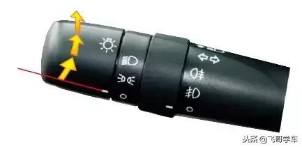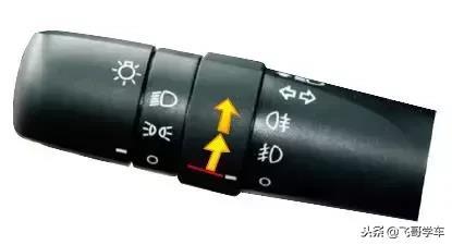在前照灯开关位于或时可使用雾灯。如下图所示,向前旋转旋钮,打开雾灯,向后旋转旋钮,关闭雾灯。可以从组合仪表上看到雾灯的开关状态。旋钮向前转动1次,打开前雾灯;旋钮再向前转动1次,后雾灯与前雾灯同时点亮。
