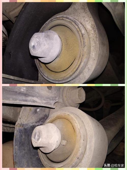 下摆臂胶套老化损伤。