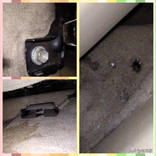 座椅螺丝改装拆卸;出风口有灰尘但无泥沙,只是地毯存在脏污现象,同时地毯还有多处烫伤。