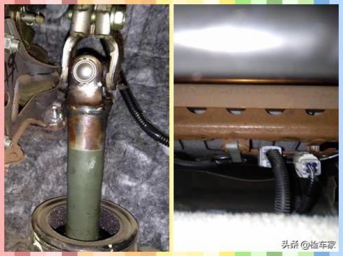 接下来检测发动机本体,发动机气门室盖有渗油现象;节温器更换;左右两侧减震包连接件无损伤,这个地方一但受到撞击是很容易变形的,并且由于有弧度因此很难去进行复原。