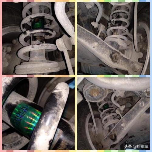 前减震无更换,各部件螺丝有锈蚀,零部件无明显损伤,胶套存在老化。