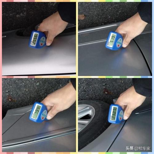 接下来检测车身右侧,发现右后叶、右后门、右前门和右前叶有钣金喷漆的现象。
