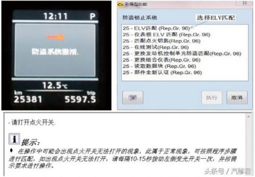 根据提示进行ELV与防盗的匹配,匹配完成后需要根据提示关闭点火开关,然后再打开,会显示如图7所示的内容。