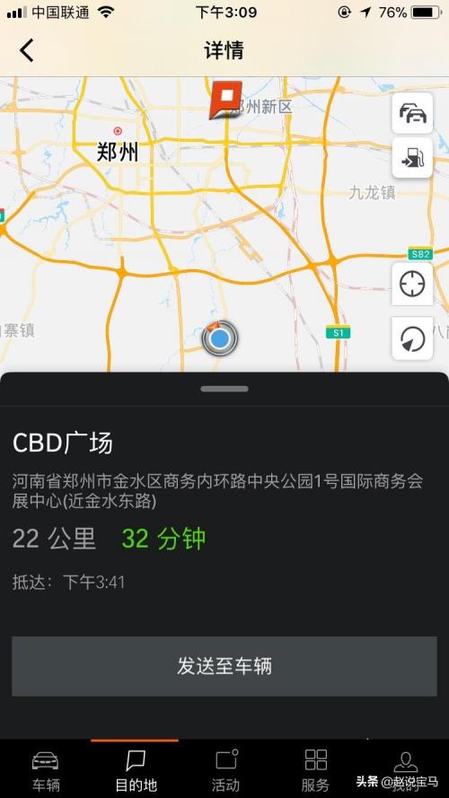 2、都2019年了,不想用电脑?那拿出你的手机,打开BMW云端互联,在最下方目的地搜索,找到后点击发动到车辆,上车直接就可以导航了,这个够炫吧!