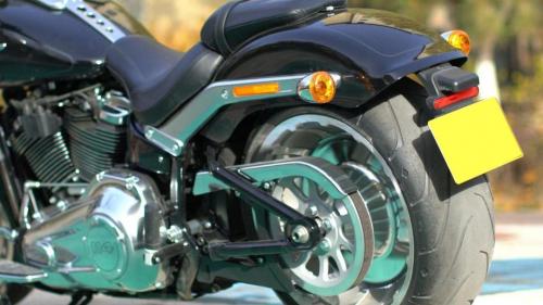 新的Softail(软尾)车架组件减少了50%,焊接部分减少了22%,车架的整体刚性也得到了提高,同时新肥仔的车重较上一代减轻14kg。同时为了骑士们调节方便,在车身右侧加入了预载可调的旋钮。