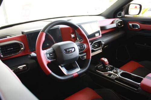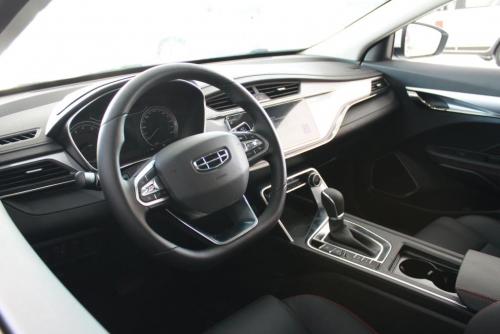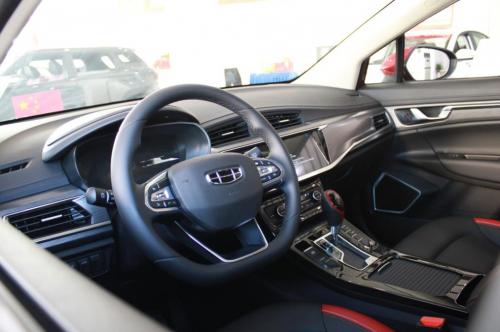 内饰方面,车内布局比较简洁。拱形仪表板中融入了空调出风口和中控屏,副驾前方还有钢琴烤漆元素进行点缀,质感突出。值得一提的是,帝豪GS采用红/黑撞色的运动风格座椅,具有一定的运动气息。