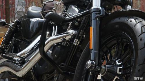 别看这台X48车身很低、很简洁,看上去很轻的样子,其实这台车重达244kg,所以加装防摔杠还是很有必要的。