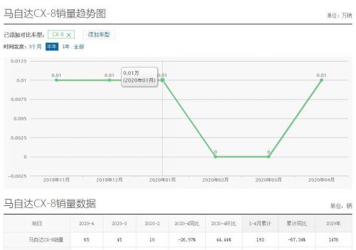 作为一台在2018年12月份才推出的"所谓"中大型SUV,马自达CX-8的销量至今迟迟没有起色,不管是2019年累计售出的1476辆,还是今年1-4月总共售出的193台,多方数据都足以支撑马自达CX-8的推出是失败的。而透过这些数据我们也想分析,为什么向来以运动和操控而深受消费者所喜爱的马自达品牌,在CX-8上却屡试不"灵"了?当初网友不是说好的入华就买吗?