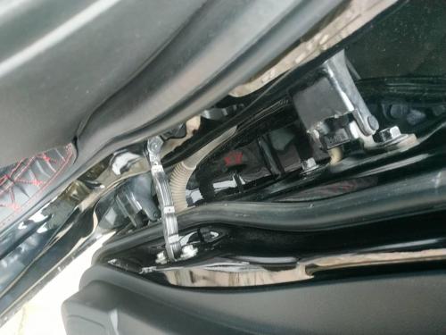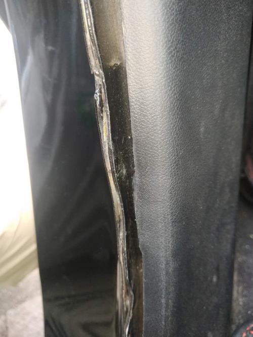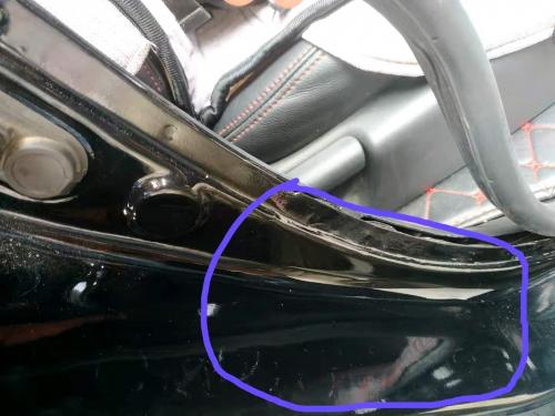 右侧B柱无明显圆润焊点,圈内为切割更换部分
