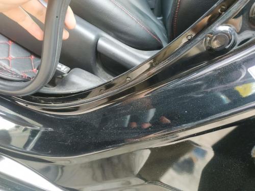 大家可以看到,车辆是原车主一手车,所以外观内饰比较新,里程数也不多。车主叙述基本就市内代步使用了,第一辆车嘛一般都比较爱护,但是上路难免会刮刮碰碰倒也正常。但是他这车确实是事故车,说点子比较差一点都不为过,整个车辆只有右侧两车门更换喷漆,事故位置呢也就是右侧两门中间B柱局部切割更换。大家看仔细,是B柱局部切割更换,也就切割了一小段,并不是B柱整体切割更换。一起来看看实车图片,看看大家能否对比两张左右B柱的照片,看出有什么不同。