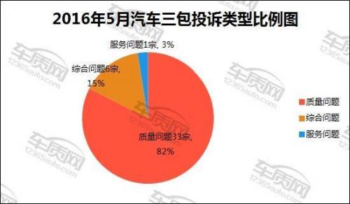 作为国内领先的缺陷汽车产品信息收集平台,车质网2016年5月共接到涉及汽车三包相关规定投诉40宗,环比4月投诉量减少了28.6%。针对5月投诉,厂家共对27宗投诉做出了回复,回复率为67.5%,环比增长了21.5个百分点。其中,共有16家车企对涉及三包相关问题的投诉进行回复,其中15家回复率为100%,2宗已撤诉。