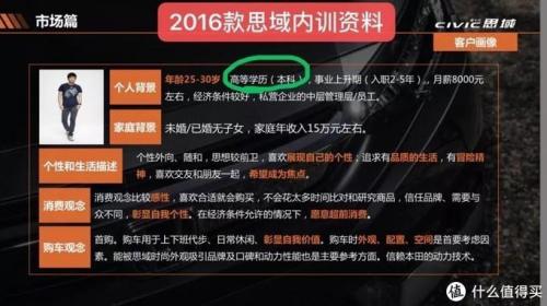 说到这个话题,不得不先表扬一下新款思域的内训材料,对于消费人群的定位很精准。