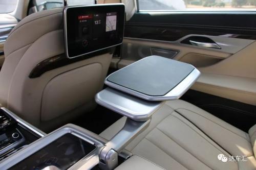 后排空间不多说了吧,这个级别的顶级表现,任何数据上的对比都是没有意义的。达车汇的词汇量比较贫乏,这里只想用真宽敞、真舒服等通俗易懂的词来让你明白。后排是偏商务的两人座布局,中间扶手是固定的,屏幕和平板让后排乘客有着比前排更自如的娱乐享受,必要时还可以取出做工精致的小桌板来个临时办公。