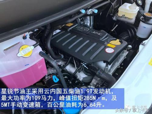 星锐节油王采用云内国五柴油1.9T发动机及5MT手动变速箱,百公里油耗仅6.64L。