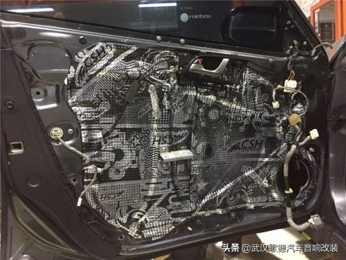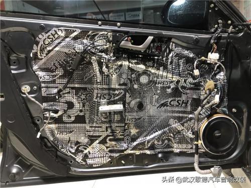 门板的风噪改装师安装了一层STP CSH小炸弹,提升钣金扎实度、减小钣金共振噪音,将车门密封,有效减小风噪入侵。同时把车门打造成一个箱体,使喇叭发声更加出色。