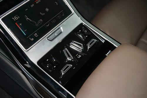 在顶配车型上,A8使用的是行政风格的四座布局,毕竟超过3米1的轴距,空间自然没问题。全真皮带航空头枕的后排座椅,舒适度自然也是极佳。四座版本的行政车型,在中间部分有一个单独的操作区域,可以控制座椅按摩、加热、通风、显示屏、天窗、空调和音响等,功能非常丰富,特别注重了后排乘客的乘坐体验。