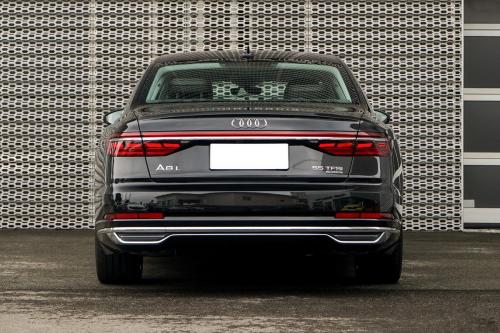 尾部造型上,奥迪A8最吸引人的就是那一条全LED的贯穿式尾灯了。点亮的那一瞬间就像一个飞船一样,非常的神秘。并且线条的运用也为A8的尾部增添了不少层次感。下方的双边四出排气十分低调地隐藏在了底盘下方,外边的两个排气则只是镀铬的装饰口。