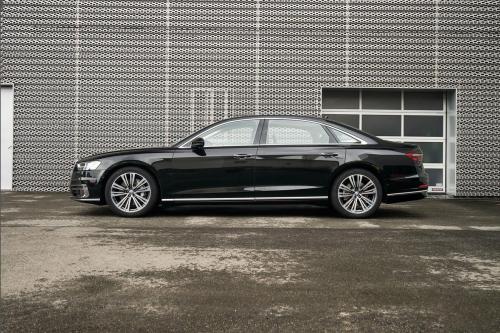 在悬架方面,奥迪A8前后悬架均使用的是多连杆式独悬结构,滤震性非常的不错,整体调校风格是偏舒适性的。而且,空气悬架的舒适度真的不是C级车、B级车能够相提并论的。并且,值得一提的是,A8还具备后轮随动转向,即便是它整车长超5.3米,转向半径也能有效减小,提升的操控性是很显著的。驱动方面,奥迪A8依然选择了全系都保留全时四驱,而且还是奥迪的看家本领Quattro的四驱,使用了机械扭矩限滑式的中央差速器,动力分配为50:50。