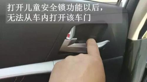 有的乘客在乘坐后排座位时,车门从里面打不开,但是外面能打开,还以为是车门坏了呢。其实是后门打开了儿童安全锁的缘故。儿童安全锁是专门针对儿童安全设置的一项配置,当上锁时,儿童乘坐在后排无法从里面打开车门,家长可以从外面打开车门,防止儿童乘车时自己打开车门掉落车外。