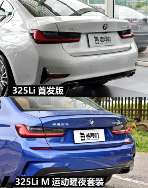 首发版车尾下包围的设计和后雾灯的位置与带有M运动套件的车型也有所不同,M运动曜夜套装车型的后备厢上方比其它型号多出了一块亮黑色的扰流板。