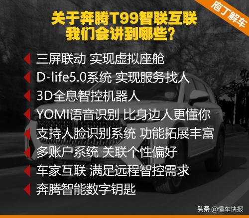 那么看似炫酷的功能能否改变我们的车生活呢?下面笔者就将通过《庖丁解车》,为您详细解读奔腾T99的交互式智能系统。