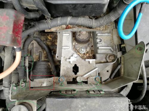 10个绿色圈是可以手动移除的活动接口,固定着电线、进气管和保险盒等;