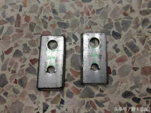 两块延长配件厚3mm,保证连接的稳固,两个孔相距2cm。
