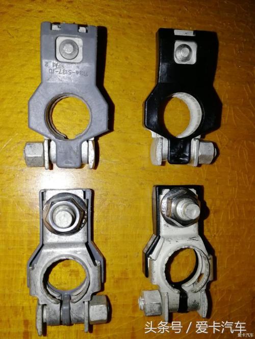原车标配45Ah的电瓶桩头是小头,升级60Ah电瓶就需要更换这样标准的电瓶桩头。